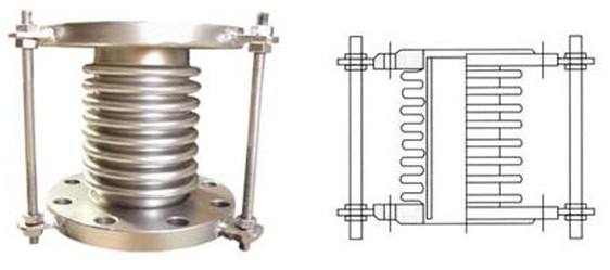軸向內(nèi)壓式波紋補償器習(xí)慣上也叫減震式波紋補償器,波紋管,膨脹節(jié),或伸縮節(jié)。由構(gòu)成其工作主體的波紋管(一種彈性元件)和端 管、支架、法蘭、導(dǎo)管等附件組成。